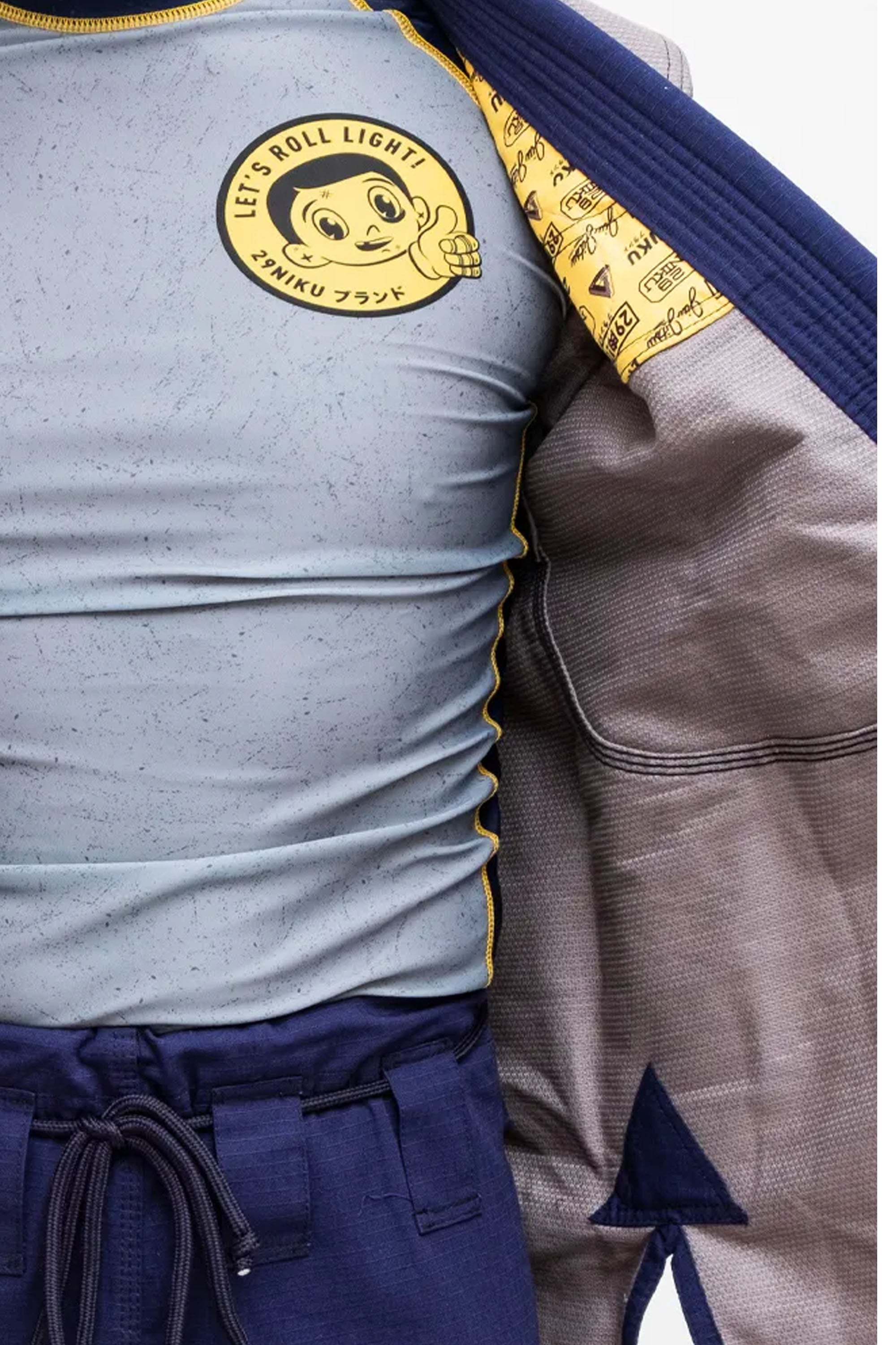 The Jacket and the pants has high definition weaved patches and embroidery, but with a lot of room for team patches. The jacket is made of 450 gsm (gram per square meter) pearl weave with reinforcements in the right places. The pants are made of 280 gsm rip stop cotton with double reinforced knee areas. The cuffs on both sleeves and pant legs have four rows of stitching. The gi’s collar is made of EVA-foam to prevent sweat and bacteria absorbing into the collar. Belt is sold separately. This gi will shrink approximately 3-7 % after 5 washes at 30 degrees celsius. Belt is sold separately. The gi is delivered in a sublimated drawstring bag.