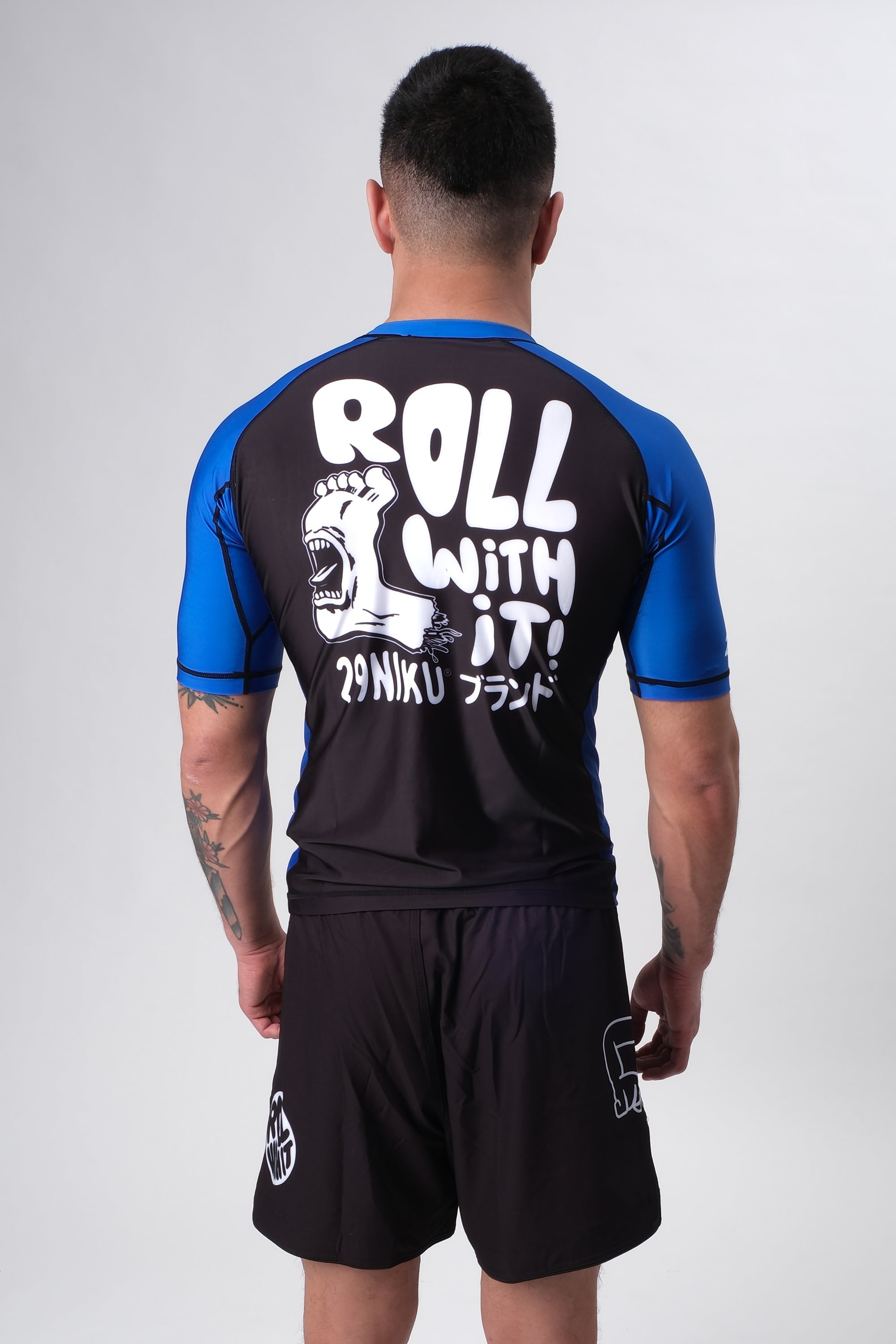 The Rashguard is made out of 88/12 poly/spandex blend. The cut is slightly longer so you don't have to show off the belly button. The rashguard is sublimation printed, so there is no risc of fading, cracks of coming off the fabric. The rashguard is design for no gi Jiu Jitsu, under the gi, MMA or grappling but it will also work excellent for other sports. Machine wash cold, and hand dry. Do not wash with other garments that has zippers, velcro or other metalls. The risc is that is will rip the fabric. Wash it in a laundry bag to keep it safe.