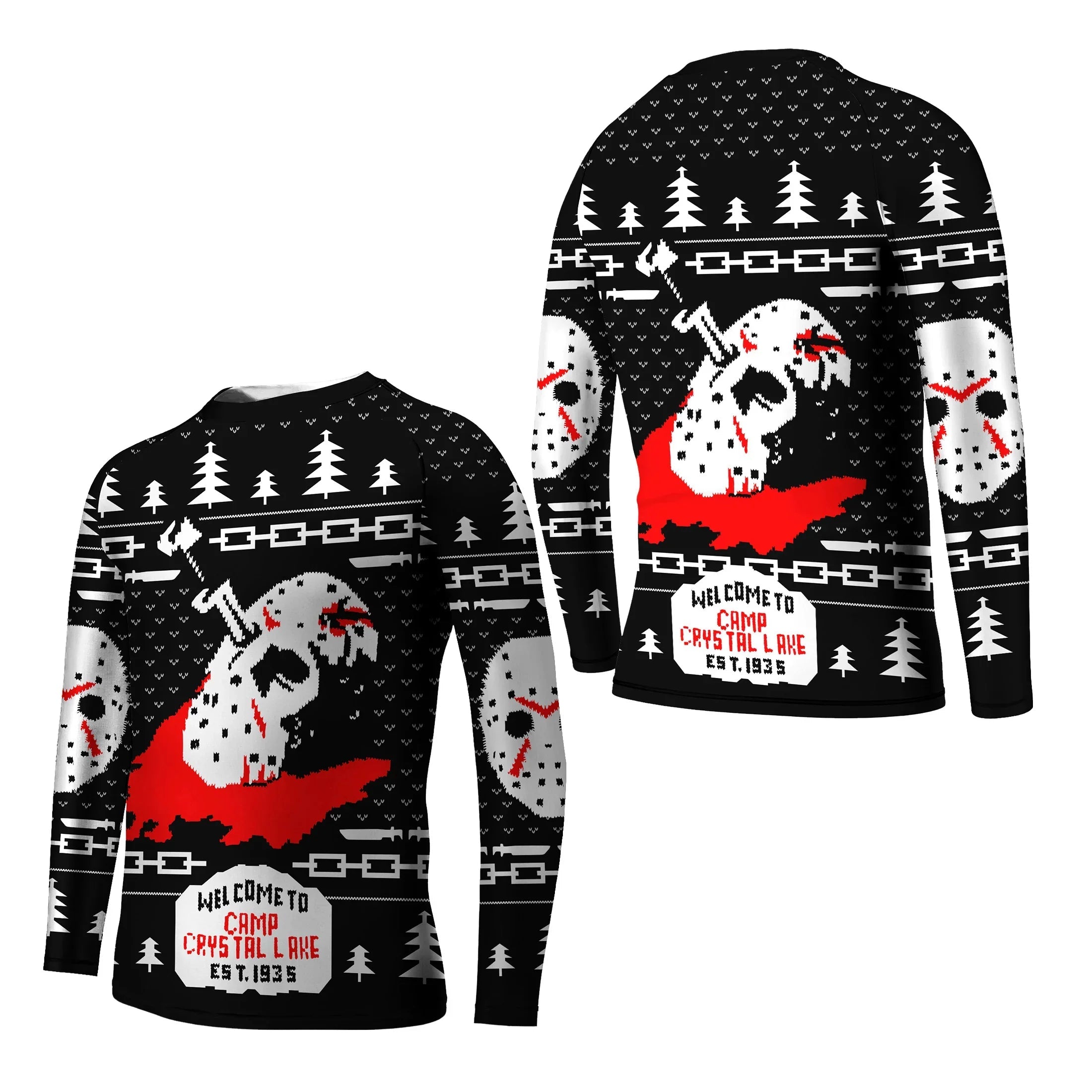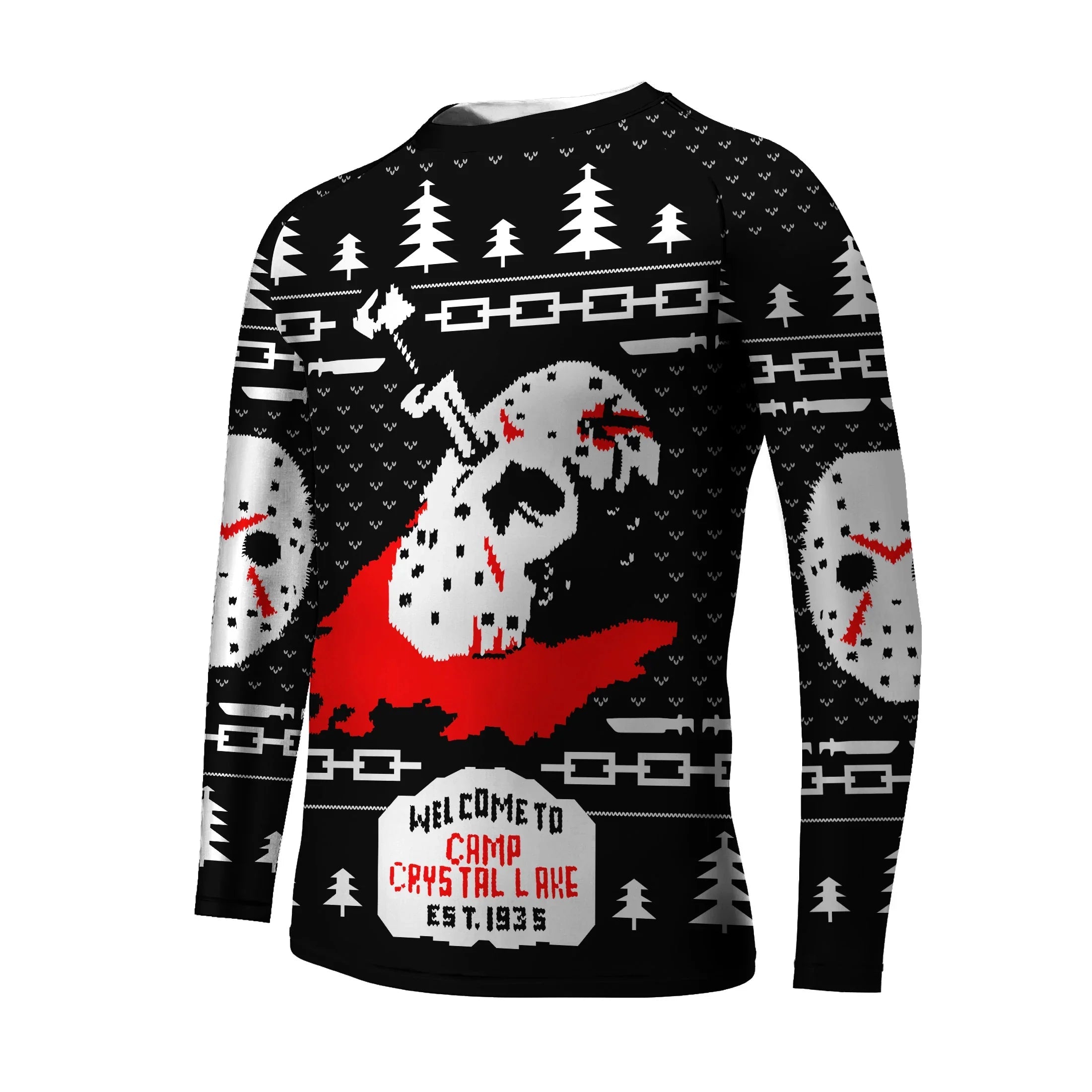 The Camp Crystal Lake Christmas Kids Rash Guard is not just for sports; it's a festive addition to any holiday wardrobe. With its unique design and seasonal flair, it's a great gift for young athletes who want to stand out during the holiday season.