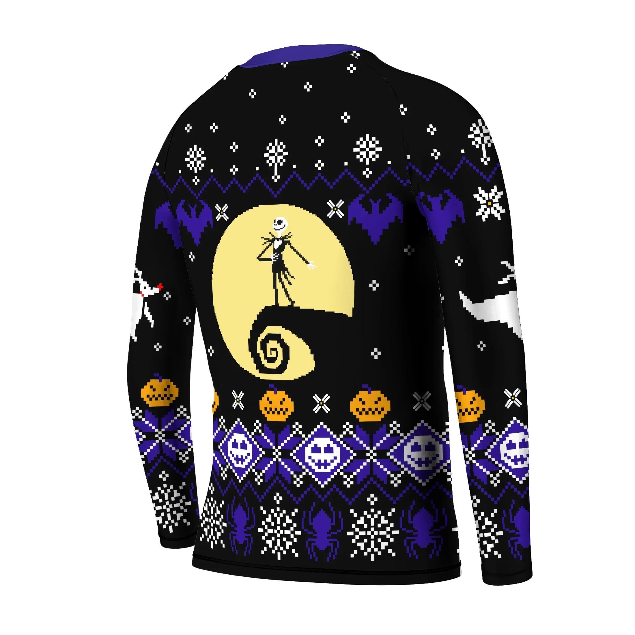 This kids rash guard stands out with its unique fusion of holiday spirit and pop culture. The inspiration behind the blue Jack Skellington design merges the magic of Christmas with the iconic imagery from beloved stories. Pulling artistic influence from superheroes, Norse and Roman mythology, and the rich colors of Asian cultures, its graphic appeals to kids’ imaginations while still reflecting a modern edge suited for contemporary sports. The result is a wearable piece of art that excites young minds and boosts confidence both on and off the mat.