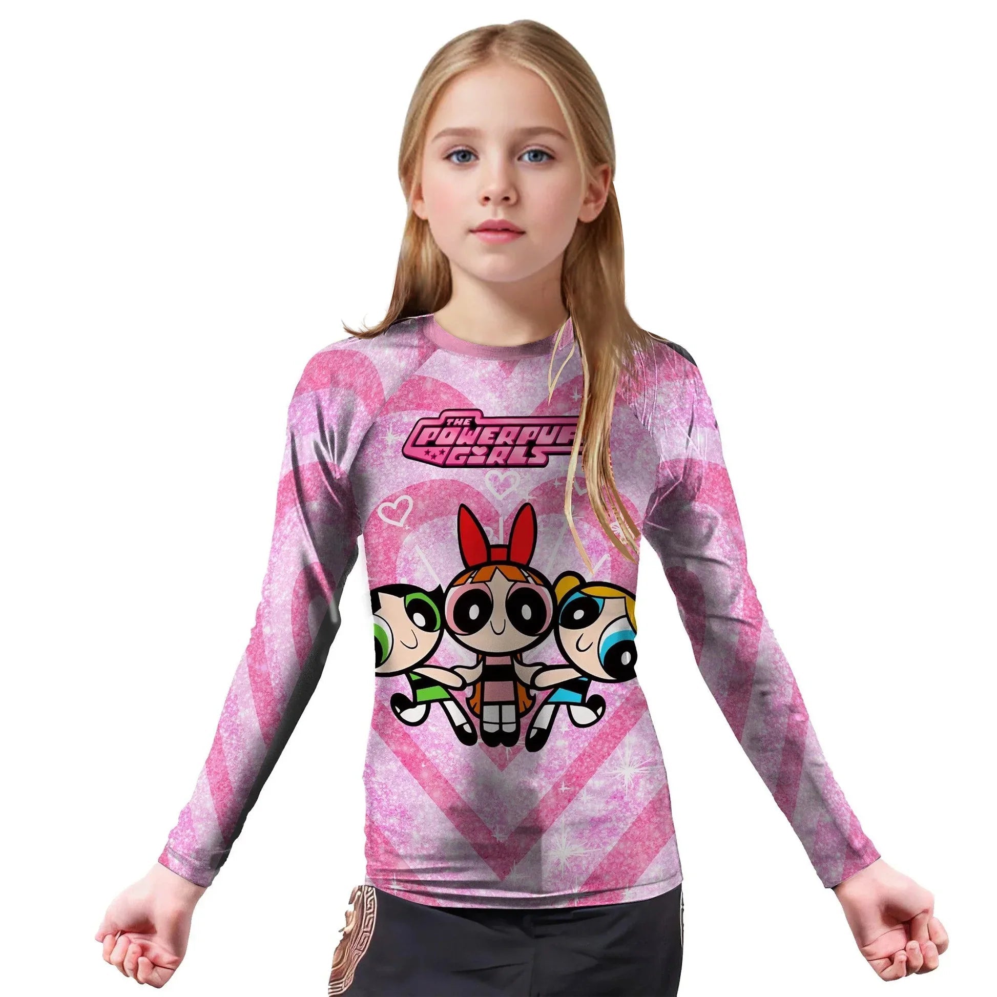 Introducing the Powerpuff Girls Heartbeat Kids Rash Guard, a versatile and stylish piece of athletic wear designed for young enthusiasts of various sports and fitness activities. Whether your child is into MMA, Brazilian Jiu-Jitsu, Jiu-Jitsu, Muay Thai, No-Gi Jiu-Jitsu, Grappling, Wrestling, Kickboxing, or enjoys gym workouts, Crossfit, and general fitness, this rash guard is perfect for them.