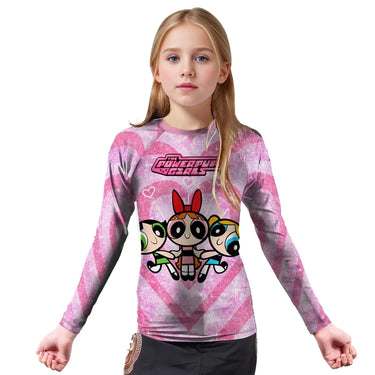 Drawing design inspiration from the realms of superheroes, the mythologies of the Norse and Romans, and the rich tapestries of Asian cultures, this kids rash guard marries the mystique of ancient myths with the dynamism of contemporary sports. The Powerpuff Girls Heartbeat design is not only visually appealing but also serves as a source of motivation and empowerment for young athletes.