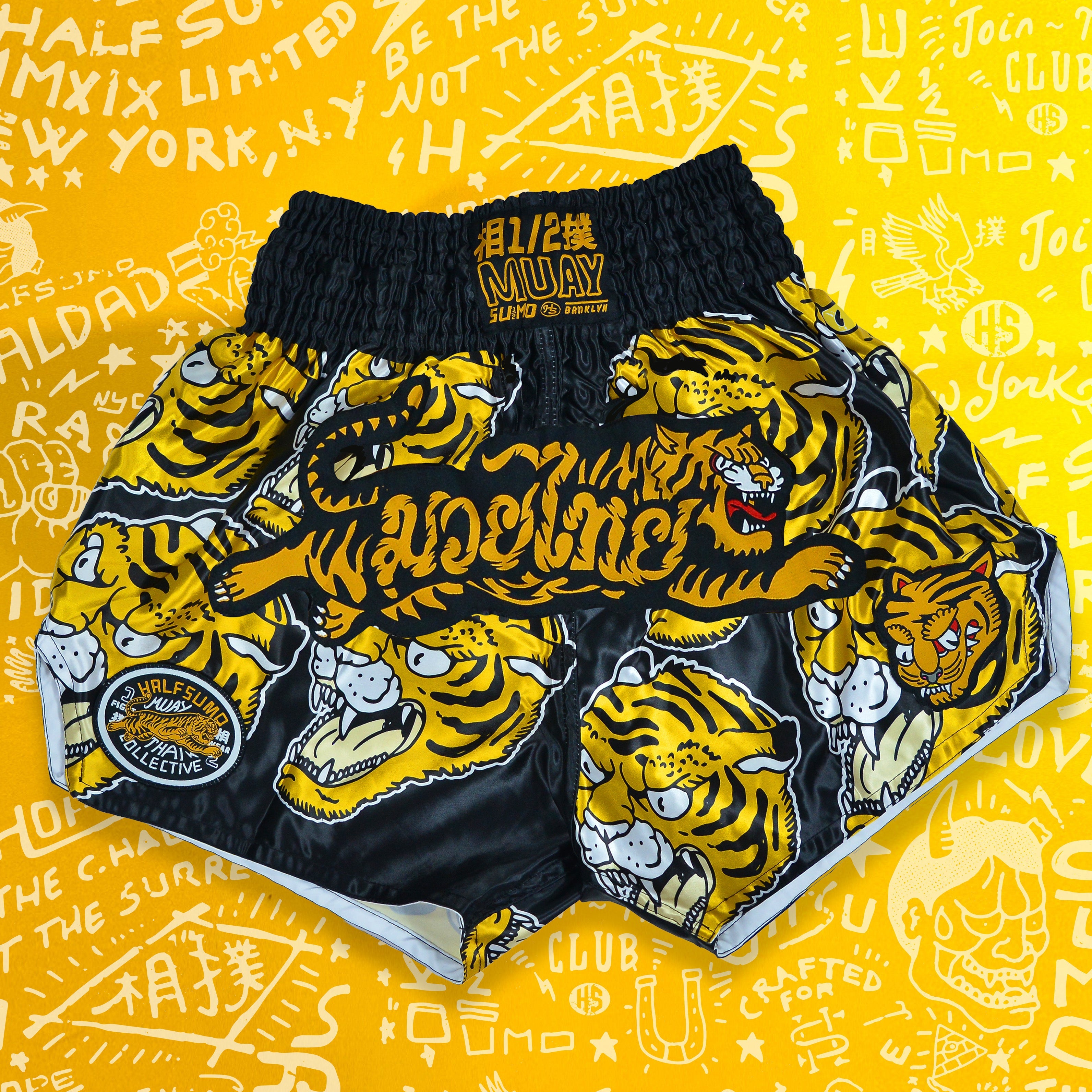 All lines are sublimated there in inspiring original Half Sumo style. A few flat woven patches sewn on the shorts render this amazing art piece even more unique.