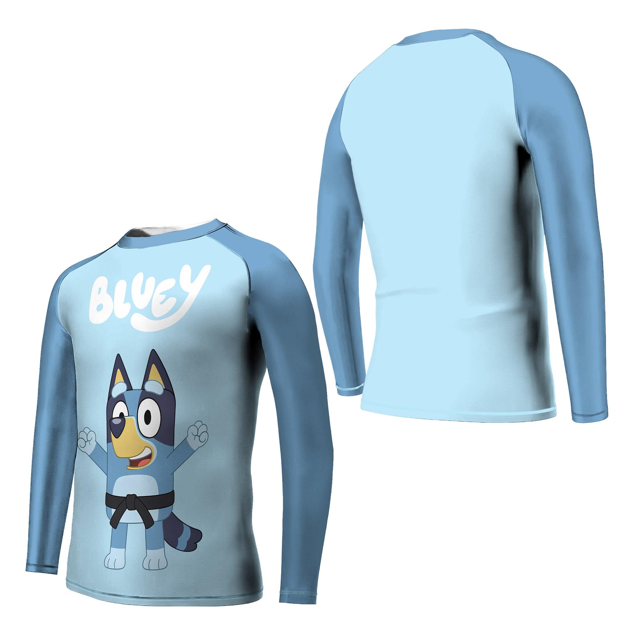 This rash guard is not just limited to martial arts; it's versatile enough for various fitness activities. Whether your child is lifting weights, running, or engaging in a high-intensity workout, the Bluey Dad Kids Rash Guard provides the support and flexibility they need.