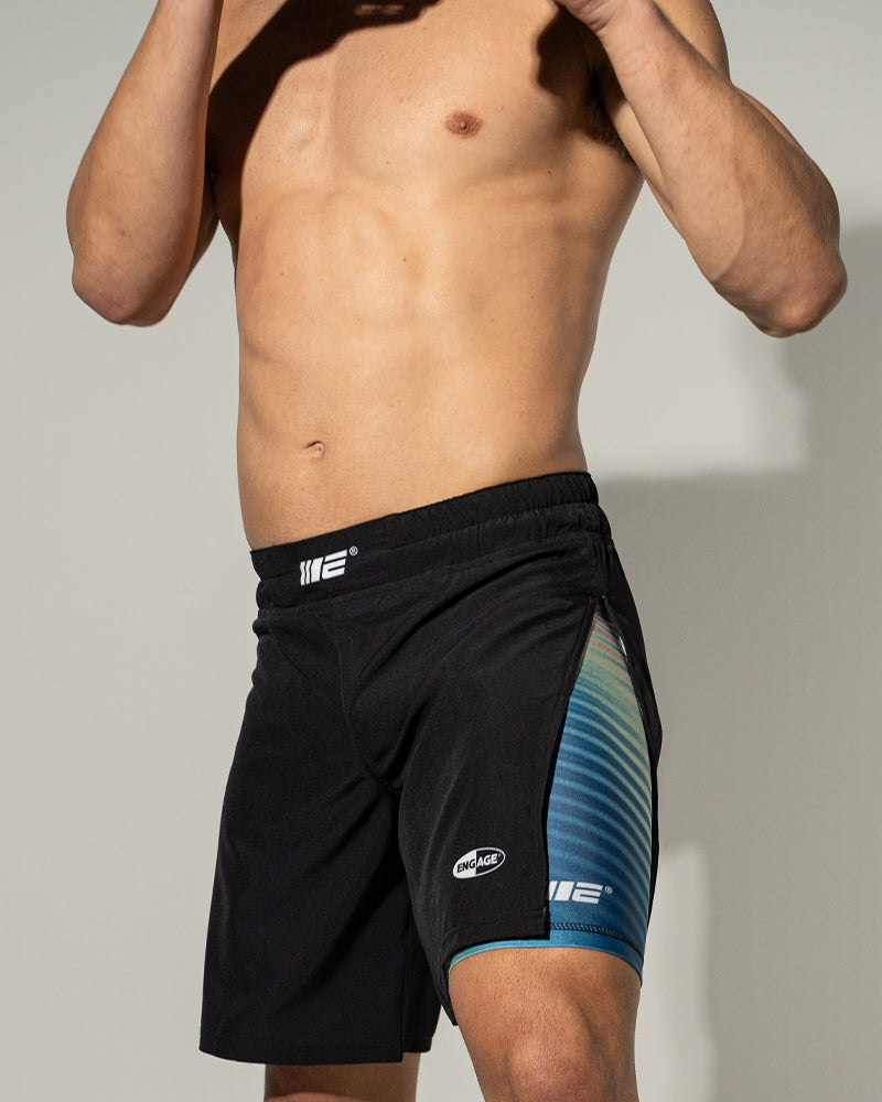 The brand new 2-in-1 Gladiator Short is an evolution of the best-selling 2-in-1 Hybrid Short from ENGAGE. Designed for competition use to meet the requirements of the world's highest ranking MMA / UFC Fighters. The 2-in-1 Gladiator Short features a compression based inner lining, and a longer length outer-shell with an increased side split.